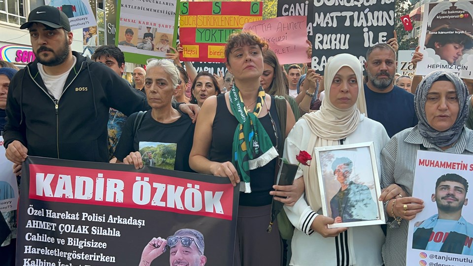 Eyleme, İzmit’te dövülerek öldürülen Kıvanç Uman’ın ailesi de katıldı. “İKİ POLİS ŞEHİT OLMUŞ, BUNU YAPAN 16 YAŞINDA İBLİS”