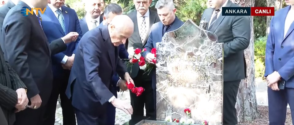 MHP Genel Başkanı Devlet Bahçeli, MHP’nin Kurucu Genel Başkanı Alparslan Türkeş’in kabrini ziyaret edip karanfil bıraktı.