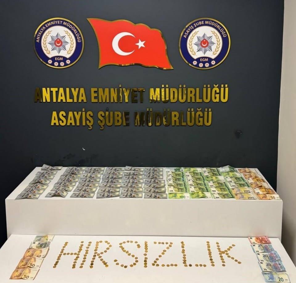 Antalya’nın Muratpaşa ilçesinde bulunan bir ikamette 193 adet çeyrek altın, 6 bin 800 dolar ve 3 bin 150 euronun çalındığı ihbarı üzerine Asayiş Şube Müdürlüğü Hırsızlık Büro Amirliği ekipleri harekete geçti.