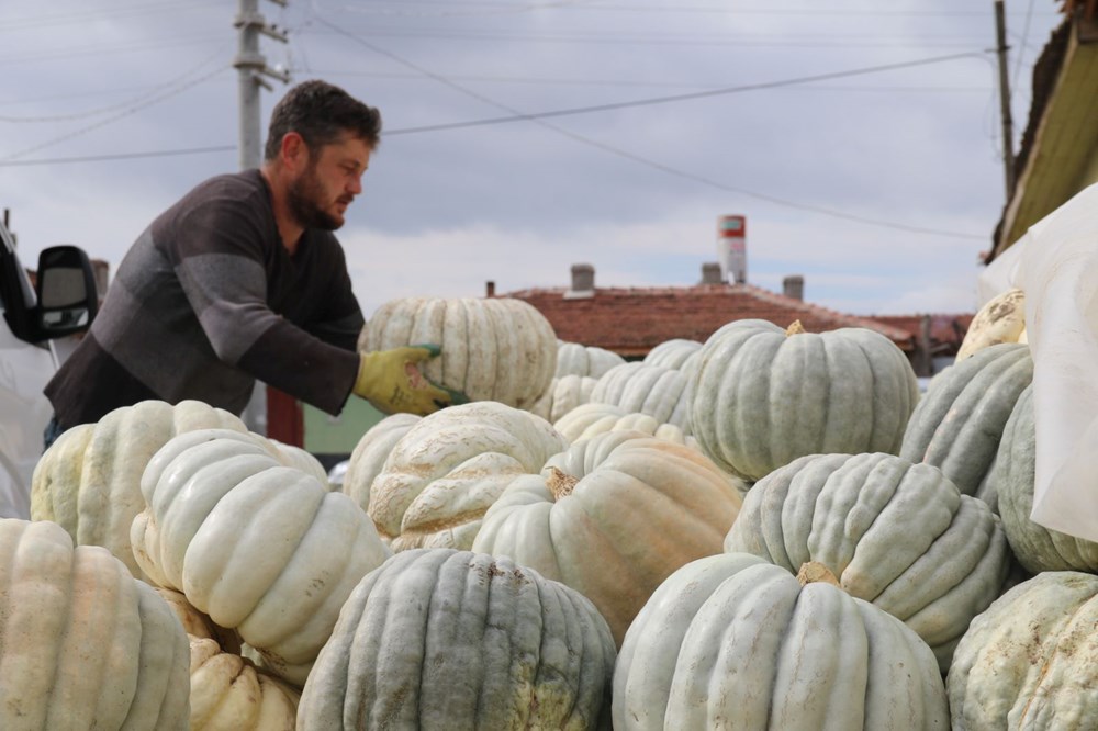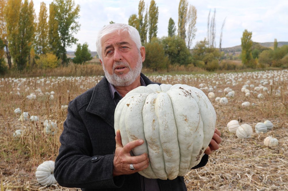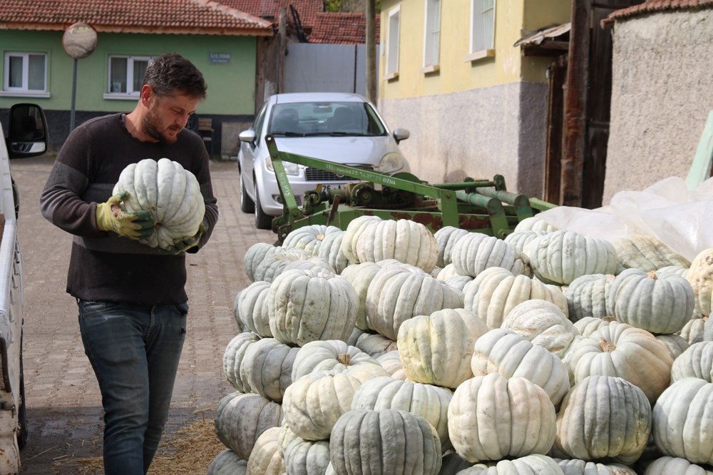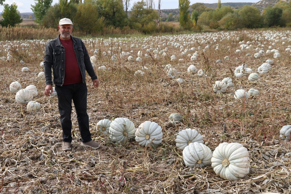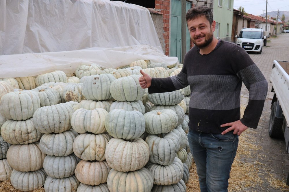 67 yaşında olan ve 55 yıldır balkabağı üreticiliği yapan Rahmi Kılıç, “Biz 55 seneden beri ata tohumu olarak ekiyoruz. Çekirdeklerini alırız, irilerinden, dilimli olanlarından ekeriz. Kestane kabağı diye geçer bizim kabağımız. Kestane şekeri nasıl oluyor, aynı onun gibi olur. Baklavadan daha iyidir bu.