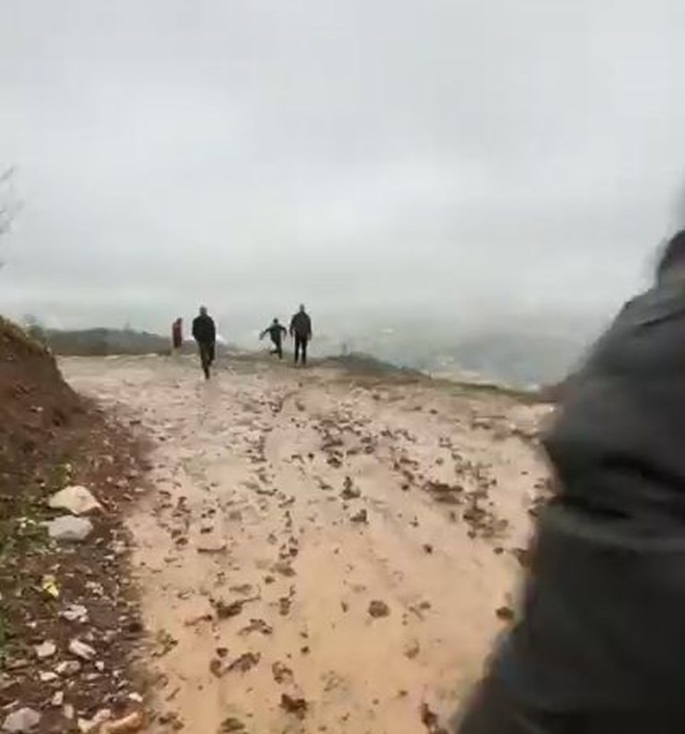 Düzköy’e bağlı Yusuflu Mahallesi’nde mezrada yamaç arazide önceki gün etkili olan sağanak ve sis sonrası heyelan meydana geldi. Kar sularının erimesi ve etkili olan sağanakla toprağın doygunluğa ulaştığı yamaç araziden kayan toprak kütlesi, beraberindeki kaya parçalarıyla yayla yoluna aktı.