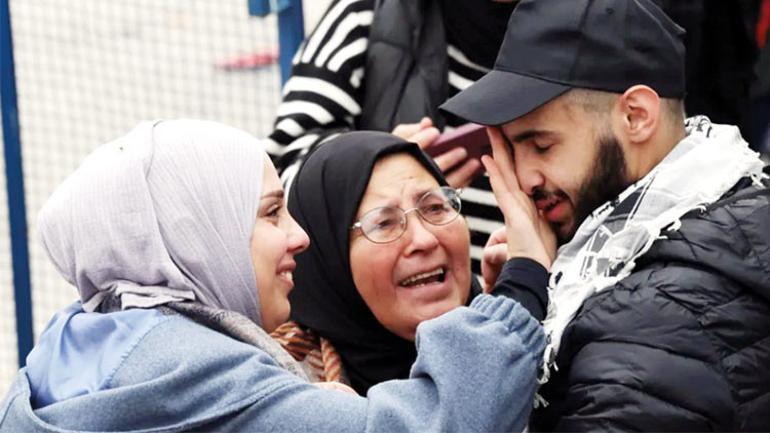 Bölgedeki Ofer Cezaevi’nden getirilen mahkûmların Kızılhaç otobüsünden inerken zayıf ve halsiz imgeleri dikkat çekti.